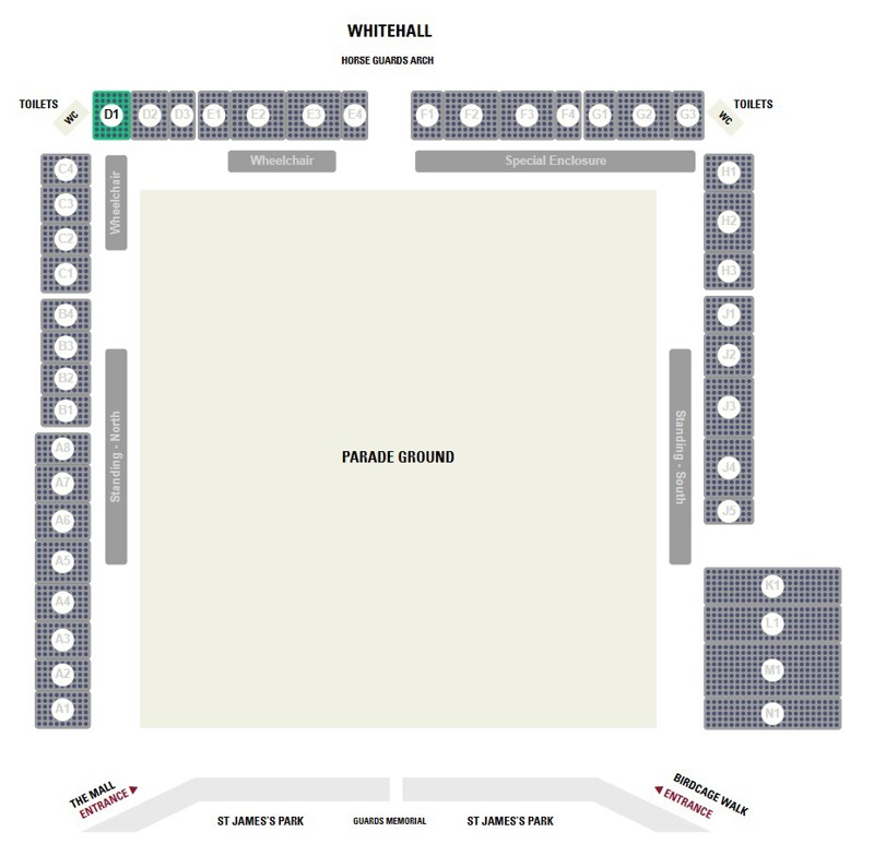 - Includes seats at Horse Guards Parade, arrival from 9.30AM